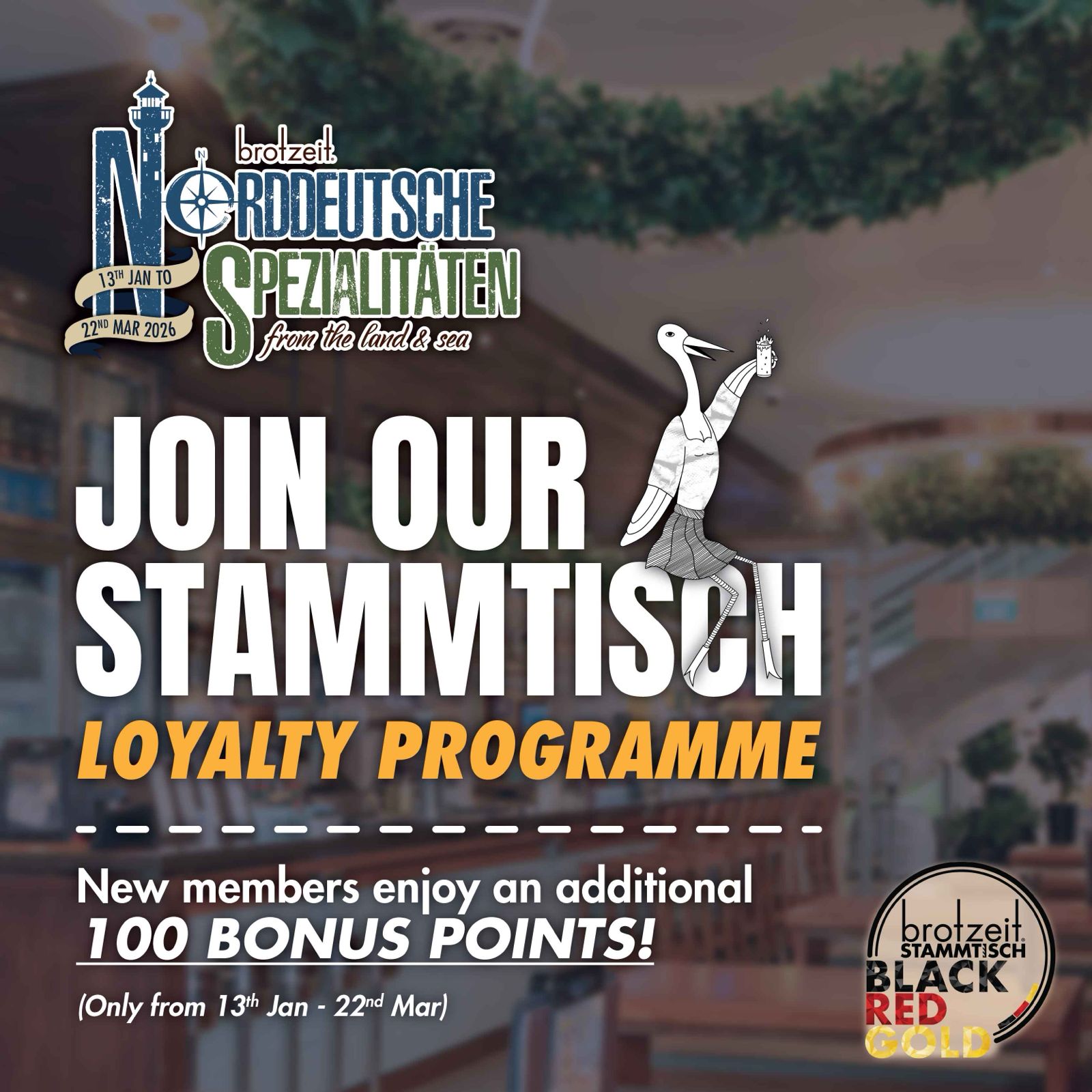 Stammtisch! In German, it means gathering together with friends and family over great beer and cuisine in Singapore. But that’s not all—we offer a Brotzeit Loyalty membership with fantastic perks! PROST 🍻